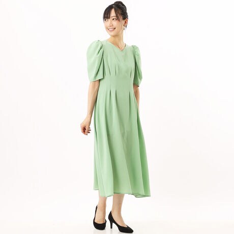 タックで袖にボリュームを出しハイウエストマークすることで今年らしいシルエットを上品に表現しています。