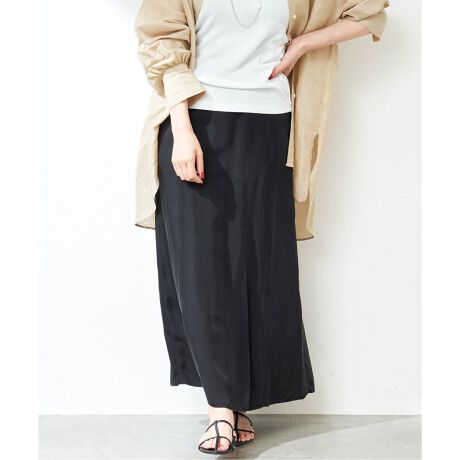 キュプラの控えめな光沢と、落ち感が綺麗なロングスカート。