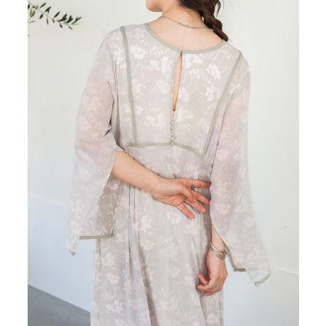 透け感のあるジョーゼット生地にオリジナルプリントでを施した2WAY着用できるワンピースの登場です。バックスタイルまでも素敵に着こなせるように、パイピングのラインやあき、ボタンの数などにもこだわっています。また袖下のボタンを外して着用いただくとよりエアリー感ある違った印象で着用いただけます。