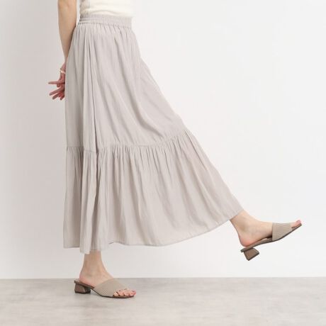 ひざ当たりの切替が足元をすっきりみせてくれ、大人っぽい印象に。