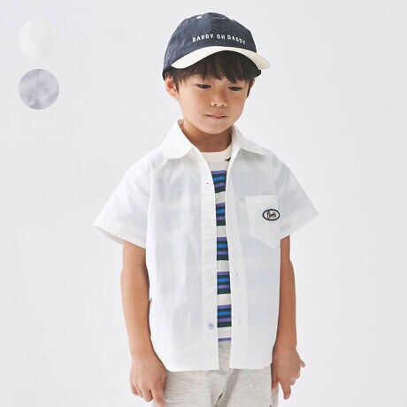 デニムと合わせてカジュアルにもジャケットなどと合わせてフォーマルにも!1枚でシャツとしても、Tシャツと合わせて羽織としても。色々なシーンで使えるベーシックでシンプルなデザインのシャツ。同じデザインのスクールサイズ(150160cm)はV30503になります。【アイテム】トップス カジュアル お洒落 オシャレ かっこいい かわいい 可愛い 普段着 デイリーウェア お出かけ着 お外着 お外遊び着 子ども服 こども服 男児 男の子 ボーイズ キッズ ベビーサイズ トドラーサイズ 幼稚園 保育園 小学校 通園 通学 小学生 2023年夏物新作 丸高衣料 半袖 ホワイト 白色 ブルーグレー 青色 灰色 ダディオダディ コットン100% 綿100%