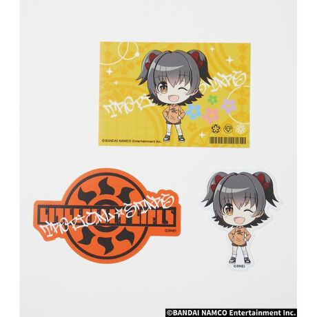 SD描き起こしイラストを使用したステッカーセット。 1枚で存在感のある背景付きのステッカー、アイドルがダイカットされたステッカー、ユニットロンTのデザインステッカーと お好きなデザインをご自由に貼って遊べるセット。