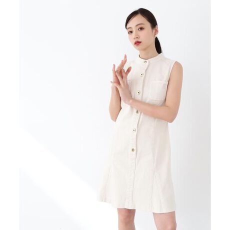 裾にはマチ切り替えをいれてデザインのポイントに。大人っぽくヘルシーに着こなして頂けます。水原さんならではのワンピース。