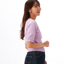 トレンドのシースルー編地とリブ編地をコンビさせたニットプルオーバーです。