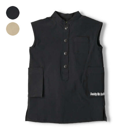高密度でハリがあり、丈夫で洗濯しても型崩れしにくい!ストレッチもきいているので、履き心地もストレスフリーなストレッチウェザー素材のノースリーブデザインのワンピース。タウンユースでもアウトドアでも使えるアイテム。立体感のあるポケットにはロゴの刺繍入り。【アイテム】トップス シンプル ガーリー フェミニン カジュアル お洒落 オシャレ かわいい 可愛い 普段着 デイリーウェア お出かけ着 お外着 お外遊び着 子ども こども 女児 女の子 ガールズ キッズ ベビーサイズ トドラーサイズ 幼稚園 保育園 小学校 通園 通学 小学生 2023年夏物新作 丸高衣料 ブラック 黒色 ベージュ ダディオダディ