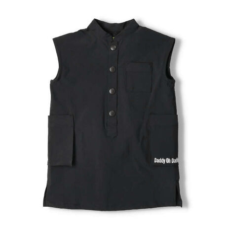 高密度でハリがあり、丈夫で洗濯しても型崩れしにくい!ストレッチもきいているので、履き心地もストレスフリーなストレッチウェザー素材のノースリーブデザインのワンピース。タウンユースでもアウトドアでも使えるアイテム。立体感のあるポケットにはロゴの刺繍入り。【アイテム】トップス シンプル ガーリー フェミニン カジュアル お洒落 オシャレ かわいい 可愛い 普段着 デイリーウェア お出かけ着 お外着 お外遊び着 子ども こども 女児 女の子 ガールズ キッズ ベビーサイズ トドラーサイズ 幼稚園 保育園 小学校 通園 通学 小学生 2023年夏物新作 丸高衣料 ブラック 黒色 ベージュ ダディオダディ