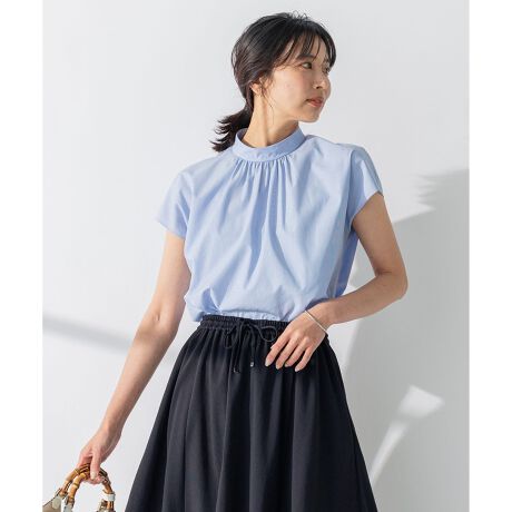 【洗える】コットンポプリン スタンドカラー ブラウス
