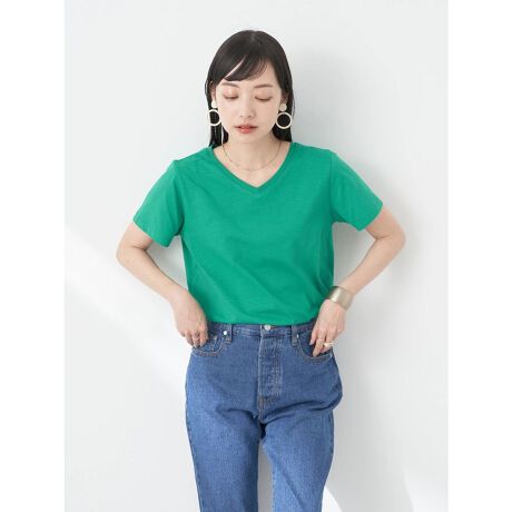 Vネックのデザインが美しいネックラインを演出するTシャツ。