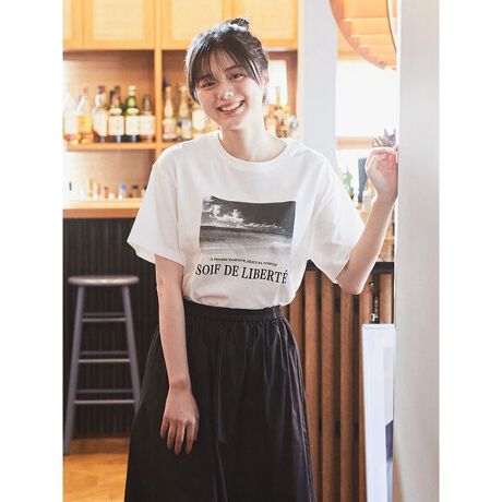 フォト×ロゴプリントでスタイリッシュなデザインに仕上げたTシャツ。