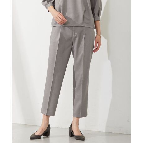 センタープレスがシャープな印象を与えてくれる1タック入りのテーパードパンツ。1タックで程良いゆとりのテーパードシルエットが脚を真っ直ぐキレイに、気になるお腹周りもスッキリ見せてくれます。ブラウスやジャケットと合わせてキレイ目なコーディネートもお薦めです。カットソーやニットと合わせてカジュアルにラフ感も出せる汎用アイテム。裏地なしです。