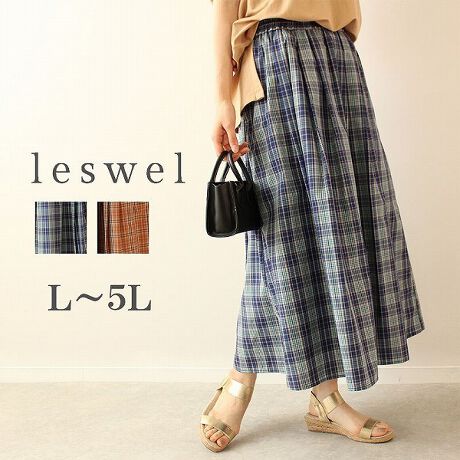 【大きいサイズ】チェック柄 タック ギャザー スカート