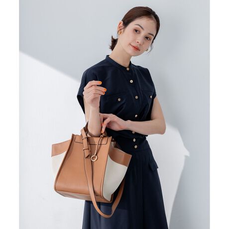 ■デザイン・素材スタイリングや気分でフォルムが変えられる4wayトートバッグ。スムースフェイクレザーとキャンバスコンビデザインになっており、大人な上品な印象に仕上げています。内側の左右、前後にマグネットが付いている為、バッグ本体の形を変えて使用が可能に。サイドを開いたトート型だとレディーな印象でサイドを留めたスクエア型だとミニマルでモードな印象に表情を変えることが出来ます。また、取り外し可能なショルダーストラップ付でクロスボディーやショルダー掛けでもお持ちいただけます。