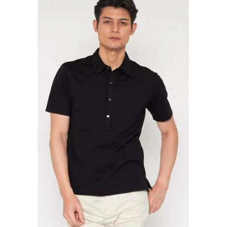 同系色シャドーボタニカル柄のシャツ地を襟や前立てに使用することでアクセントを効かせています。