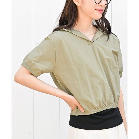 袖口、裾をゴムで絞ってふんわり女性らしく。
