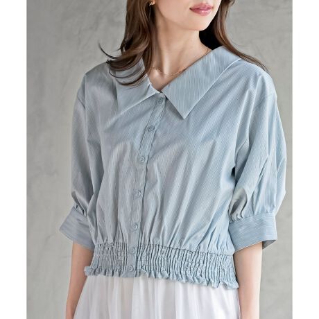 ビッグカラーが可愛いショートブラウス