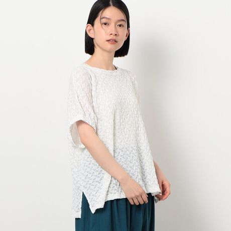 伸縮性が高くやわらかな着心地で、程よいシアー感が夏らしい素材です。