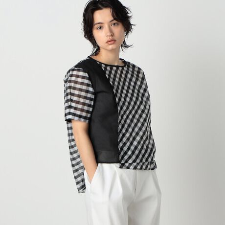 ギンガムチェックと黒無地の素材ミックスなデザインがモードな印象です。