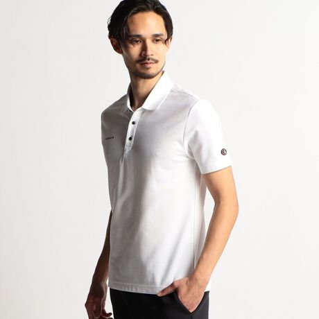 軽くて柔らかくスポ−ツウェアの様な快適な着用感が特徴。吸水速乾加工を施し機能性をプラスしました。身生地オフには黒、ブラックには白の配色釦仕様、銀糸を使用した胸元小さめロゴ刺繍、左袖口のNSシリコンワッペン、後衿ぐりに使用したロゴプリント入りサテンテ−プがアクセント。シンプルながら、さり気ないギミックをポイントで効かせたスポ−ティなポロシャツに仕上がっています。