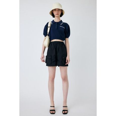【MARINE CROPPED KNIT TOP】涼しげな透かし柄がポイント且つ、配色ラインがアクセントになるポロニットトップス。程良いクロップド丈にしているので、トレンドのローライズボトムスと合わせて肌見せで着るのもオススメ。袖が少しバルーンスリーブになっているのも女性らしいポイントです。※こちらのアイテムは全身透かし柄の為、伸びやすくなっております。長時間のハンガーアップはお控えください。