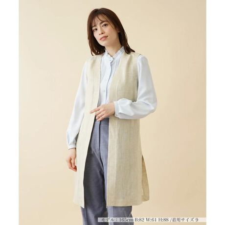 麻100%を使用した、さらりとした風合いのロングベスト。裾には深めのサイドスリットを入れ、絶妙な抜け感を作り出しています。付属の共布ベルトをウエストマークすれば、メリハリの効いた着こなしに。シンプルなカットソーやブラウスに重ねて、大人っぽくまとめたスタイルもオススメです。------------------------------------初夏なしなしなしやや薄手なし伸縮性なし-------------------------------------※商品の色味は、撮影場所や光のあたり具合、お客様のお使いの機器により色味が違って見える場合がございます。予めご了承ください。※定価(税込)は、2023年06月29日のセール開始前の店舗における販売価格です。 ■□ROCHAS Premiere(ロシャス プルミエール)・・・ROCHASブランドのイメージとレリアンの着心地の良さである立体的なシルエットを兼ね備えたレリアンのブランドです。ロシャス社からのライセンス契約に基づき【株式会社レリアン】が独占的に販売しております。□■