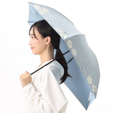[型番:1AS27005-05]「ANNA SUI」の晴雨兼用折りたたみ傘です。薔薇がほぐし調にラメプリントされていて大人かわいい雰囲気です。99%以上の遮光率、99%以上のUV遮蔽率、遮熱効果、雨の日にもご使用いただけます。