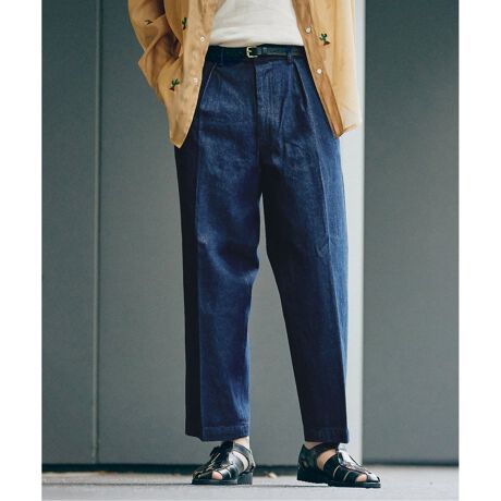 リラックスした穿き心地と見栄えの良さが特徴のタックデニムパンツ。