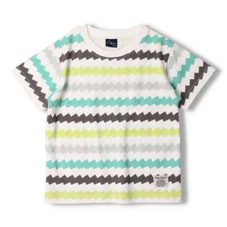[型番:N30822]ジグザグラインのボーダー柄プリント。サーフテイストのレトロ感漂う配色がアクセント。カラフルで夏らしい半袖Tシャツ。