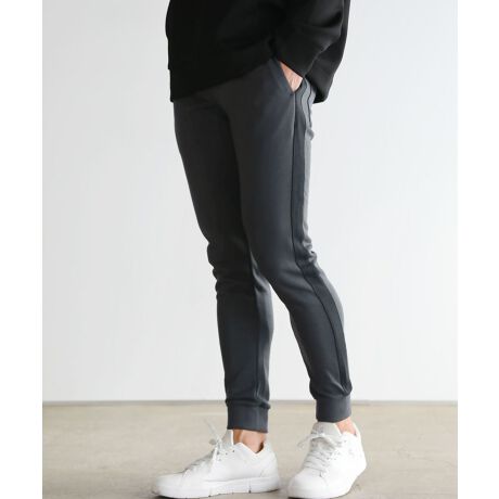 スウェット生地を使用したアイテムですが細身のシルエットで設計しているため、部屋着のようなだらしない印象は与えません。動きやすく柔らかな生地感のジョガーパンツは自転車での移動や長時間の車の運転でも疲れず、レジャーの予定などにもうってつけ。クセのないデザインなのでコーディネートに取り入れるのも簡単で、抜群の穿き心地も相まって思わずデイリーユースしてしまうアイテムです。