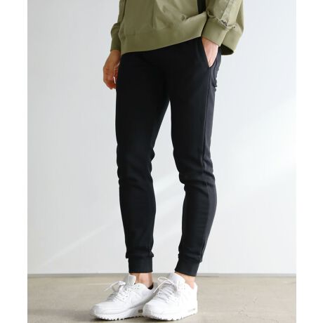 スウェット生地を使用したアイテムですが細身のシルエットで設計しているため、部屋着のようなだらしない印象は与えません。動きやすく柔らかな生地感のジョガーパンツは自転車での移動や長時間の車の運転でも疲れず、レジャーの予定などにもうってつけ。クセのないデザインなのでコーディネートに取り入れるのも簡単で、抜群の穿き心地も相まって思わずデイリーユースしてしまうアイテムです。