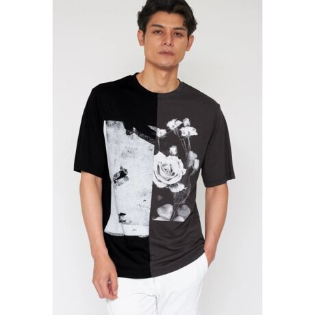TORNADO MART∴バイカラープリントオーバーTシャツ