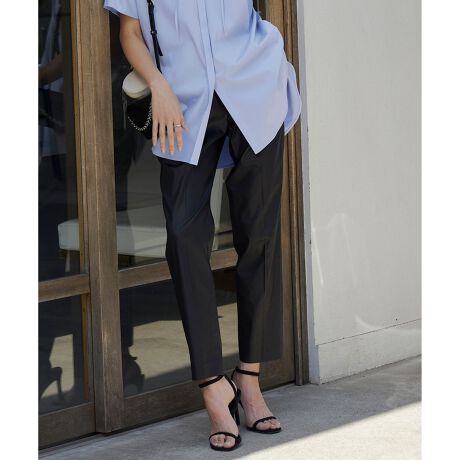 ■デザイン2タックデザインでヒップ周りを程よくカバーしてくれるテーパードパンツ。スマートバック仕様でウエスト後ろ部分にゴムが内蔵しているのでラクな履き心地を叶えます。単品使いはもちろん、同シリーズのジャケットやブラウス合わせでのセットアップでの着用もおすすめです。