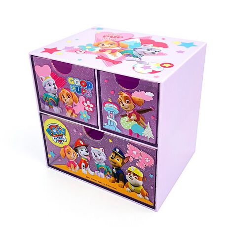 パウ・パトロールのキャラチェスト。3つの引き出しがあり、小物の収納にピッタリ!デスクや棚の上に置いてパウっとお片付けしよう♪