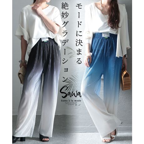 【ワイドパンツ】レディース ファッション パンツ グラデーション ブラック ブルー 黒 青 ロング