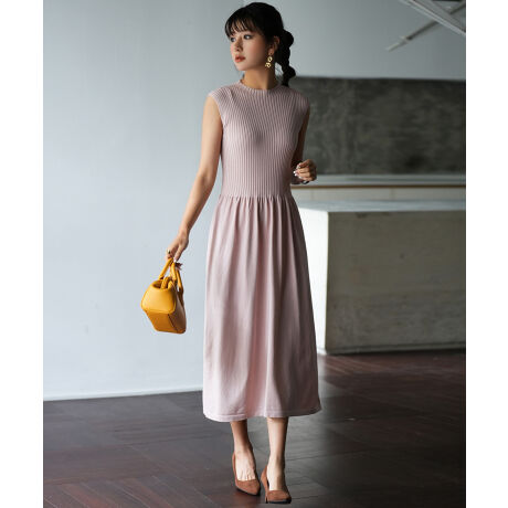 編み地切り替えがこなれた印象に仕上がる接触冷感素材のワンピースです。