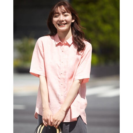【大きいサイズ】フレンチリネン半袖シャツ