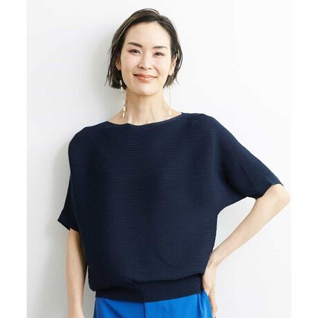 大人気のニットから、コットン×ポリエステルの夏仕様が登場しました。 ボートネックのスッキリとしたデザインになっていて、驚くほど着やすいのが魅力です。 ニット選びは、腕周りのフィット感やお腹周りの目立ちにくさを重視しますが、こちらのニットは全く気になりませんでし