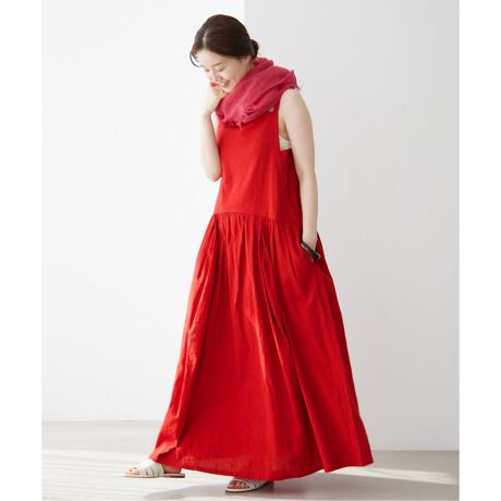 裏地のないワンピースですが、透け感のないコットンリネン素材を使用していますので、夏場の着用も安心。