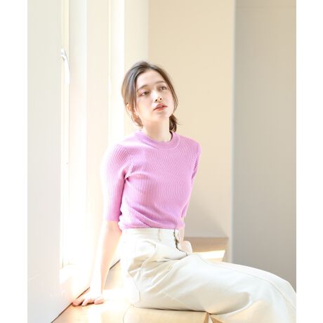 リブハーフスリーブニット