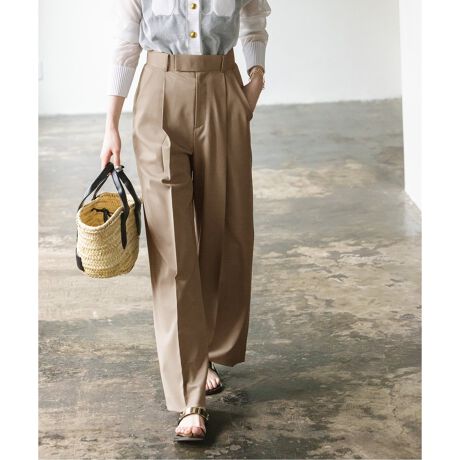 着心地:体の線は拾わず、でもスッキリ見せてくれるパンツ。ドライタッチですが透けずにはける生地なので安心してお召いただけます。