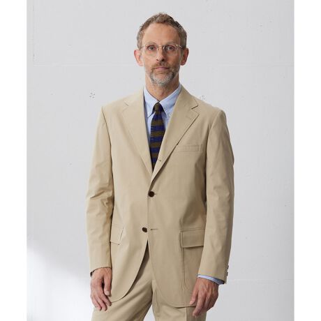 アメリカントラディショナルスタイルの夏の永久定番「T/C ポプリン」■素材・戦後のアメリカの黄金時代の中で新しい時代のシンボルとして期待が集まったポリエステル。そうした中で生まれた素材の一つが綿とポリエステルの混紡糸を使用したポプリンです。ポリエステルを混紡することで従来の綿 100 %の生地に比べて軽く丈夫な生地が生み出され瞬く間に全米中に広がり、アイヴィーリーガーの中に置いても夏の定番素材として定着していくことになります。・J.PRESS ではこの T/C ポプリンを現代のライフスタイルに合うようさらに進化をさせてストレッチ性やより軽い着用感を感じていただけるアップデートした素材を開発しました。■ジャケット快適な着心地と着る人の魅力を引き立てる服作りを信条とする J.PRESS の哲学を色濃く反映したオーセンティックモデル。英国のスーツのような威厳さを求めるのではなく、着る人を自然に演出する「ナチュラルショルダー」、「胸ダーツを取らない絞りの緩やかな胴回り」などが象徴的で歴代アメリカ大統領をはじめ多くのアイヴィーリーガーに愛された J.PRESS の伝統とクラフツマンシップを体現する正当なモデルです。また二代目アービングプレスによって採用されたセンターフックベントはブランドのアイコニックなディテールとなっています。肩肘張らず寛容なムードがあり、且つ誠意と品位を兼ね備えた人柄を演出するアメリカントラディショナルマインドに溢れた名作モデルです。■仕様芯地を極力シンプルな構造にしながら構築性もキープしたモデル。カスタムテーラーとして歴史を積み上げてきた J.PRESS のこだわりを感じられる一着です。■コーディネートレジメンタルストライプでタイドアップしたアメリカントラディショナルなスタイルが最も正統でアイヴィースタイルの醍醐味を感じていただけます。あくまで夏のビジネススーツとしてタイドアップしたスタイリングが最もおすすめです。