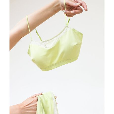 着用感: とにかく軽くてストレスフリーな着心地。パッドが縫い付け仕様なのがうれしい。カラーがどちらもかわいいのでストラップを効かせたコーディネートも楽しめそう。