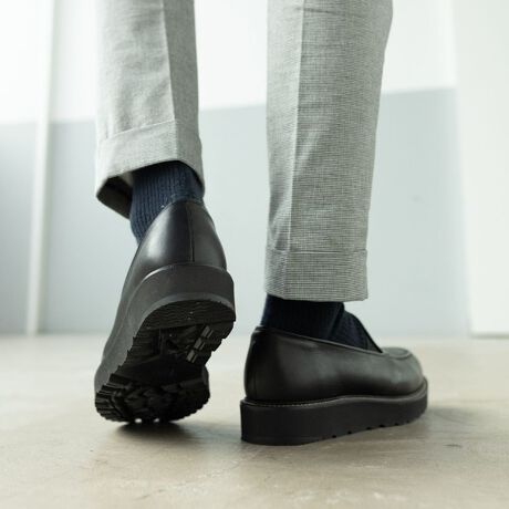 素足のような軽さと、足をやさしく包み込むやわらかさが特長のPEDALAシリーズ。クッション性とデザイン性を両立した、厚底カジュアルモデルです。おしゃれ感を演出するスリッポンで、アッパーは上質感のあるオイルドレザーやベロアを採用しています。ライニングには吸放湿性に優れたブレスレザーを使用。パワーフォーミングソールを採用し、ボリューム感をもたせながら軽さを追求しています。ハーフカップ中敷でフィット感とクッション性も向上。3Eラウンドラスト。抗菌・消臭素材をつま先部分のライニングに使用。ラフなスタイルからセットアップまで、さまざまに活用できる一足です。