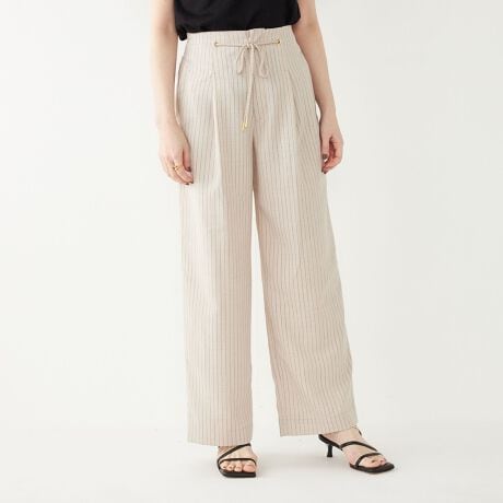 毎年人気の麻見え素材を使用したワイドパンツ。