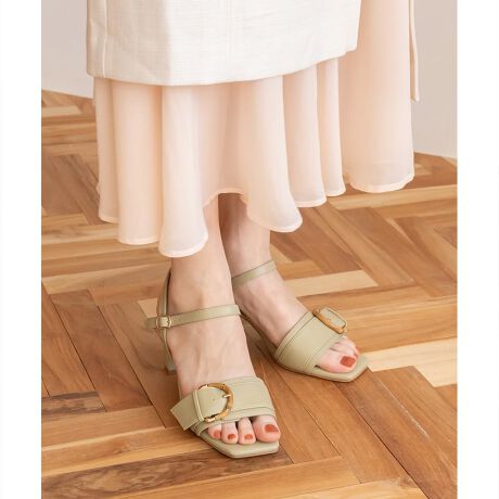 ・トレンドのスクエアトゥですっきりとした足元を演出