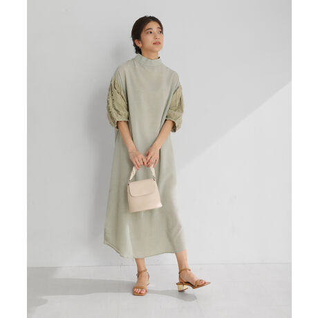 デザイン性のあるワンピースなのでさらっと1枚で着るのはもちろん、