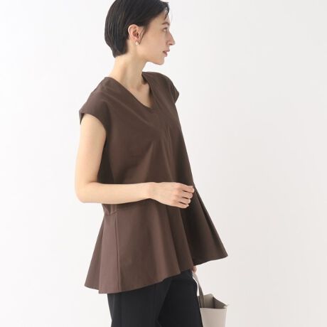 ・腰からフハク(シャツ地)で切り替えたペプラムデザインカットソー。