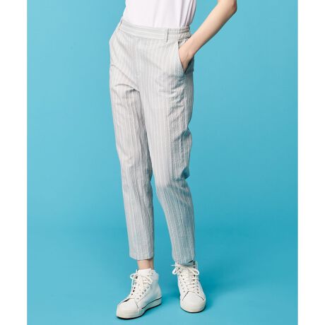 ■デザイン デイリー使いにも大変人気のサッカーパンツが洒落感あるストライプ柄と毎度完売するギンガムチェック柄の2柄で登場。前タックなしのスッキリ美脚シルエット◎ウエストゴム入りで伸縮性に優れ軽快な履き心地。