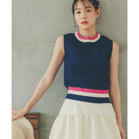 襟ぐりと裾に配色ラインを入れたメッシュニットは、裾まわりのリブ編みでフィットし、アウトスタイルで着られます。スカートにもパンツにも合わせやすく、小物使いでスポーティにも、大人のキレイめカジュアルにも着回しできます。【Designer's Voice】ネックと裾に配色を施したマルチカラーのデザインが印象的なニット。Nオリジナルの配色で、カジュアルでありながらも大人っぽい配色感にこだわってに仕上げています。ボディにはメッシュ編みを施し着映えするアイテムです。【Fabric】ポリエステルの糸で扱いやすい素材です。ふっくらとしたタッチです。