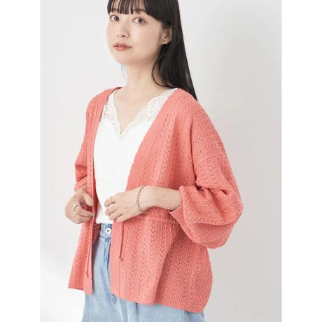 透かし編みのデザインが涼しげな雰囲気を演出するカーディガン。