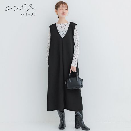 エンボス加工を施し旬な雰囲気に仕上げたワンピース。